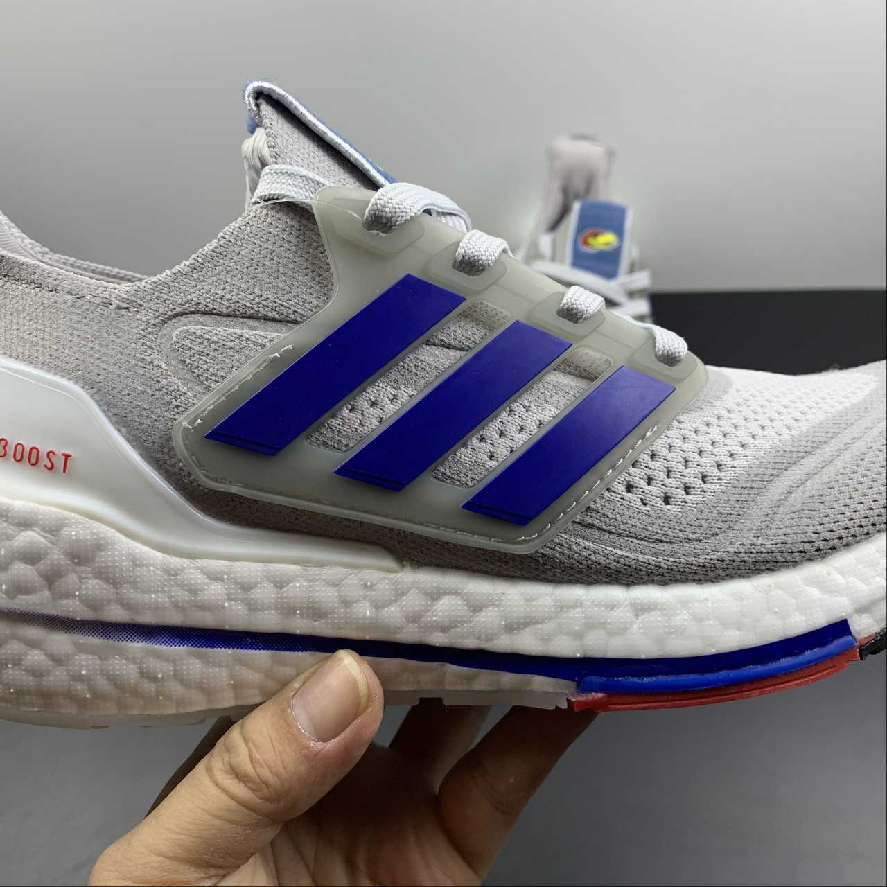 Shop the adidas UltraBoost 21 NCAA Pack – Kansas, a must-have for any Kansas fan. These sneakers feature a sleek grey colorway and are part of the exclusive NCAA Pack. With its innovative design and comfortable fit, these shoes are perfect for athletes and fans alike. Stay ahead of the game with adidas.
