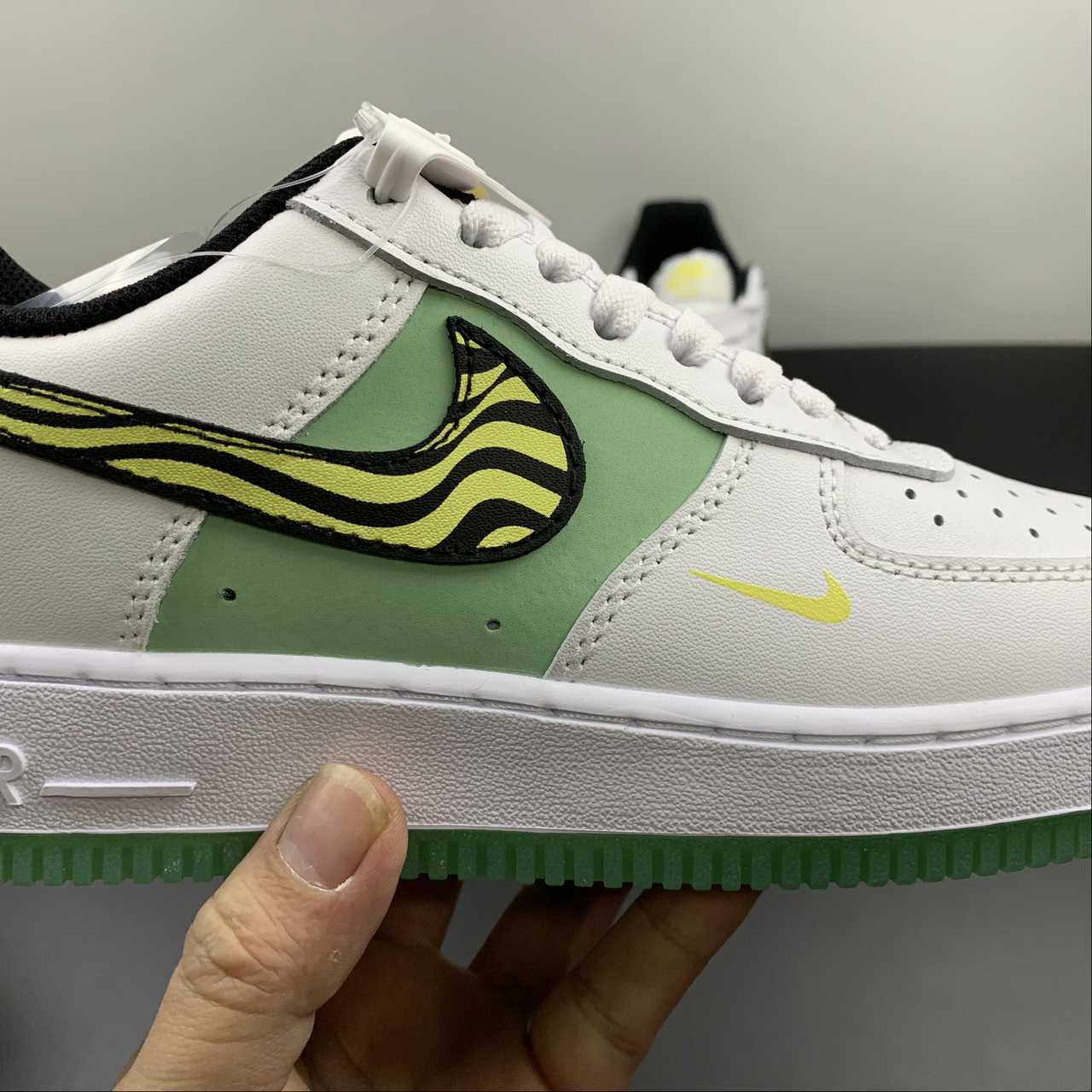 The Nike Air Force 1 Low Worldwide White Barely Volt (GS) is a stylish sneaker designed for youth. This Nike