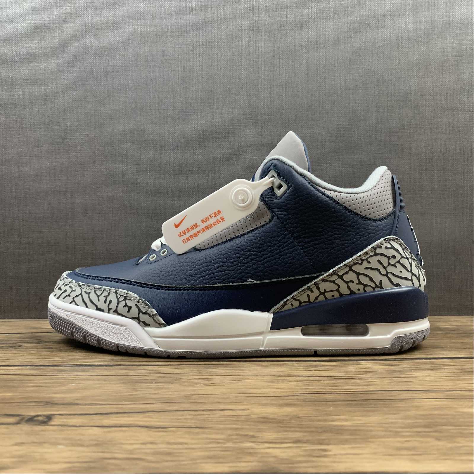 Introducing the Air Jordan 3 Retro Georgetown by Jordan. This iconic sneaker, also known as Georgetown, features a sleek navy colorway. With its timeless design and signature Air cushioning, these sneakers are perfect for both style and comfort. Shop now and elevate your sneaker game.