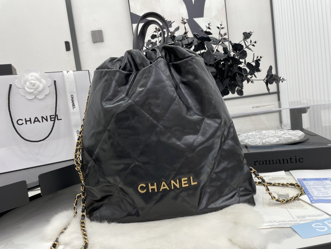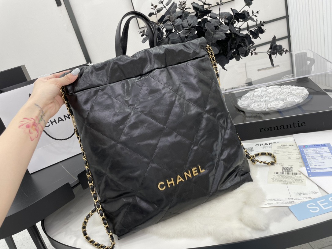 19.9 ?? 15.6 ?? 3.5 inLarge Back Pack CHANEL 22 – Shiny calfskin & gold-tone metal ?? FashionFashion – Handbags – Backpacks
