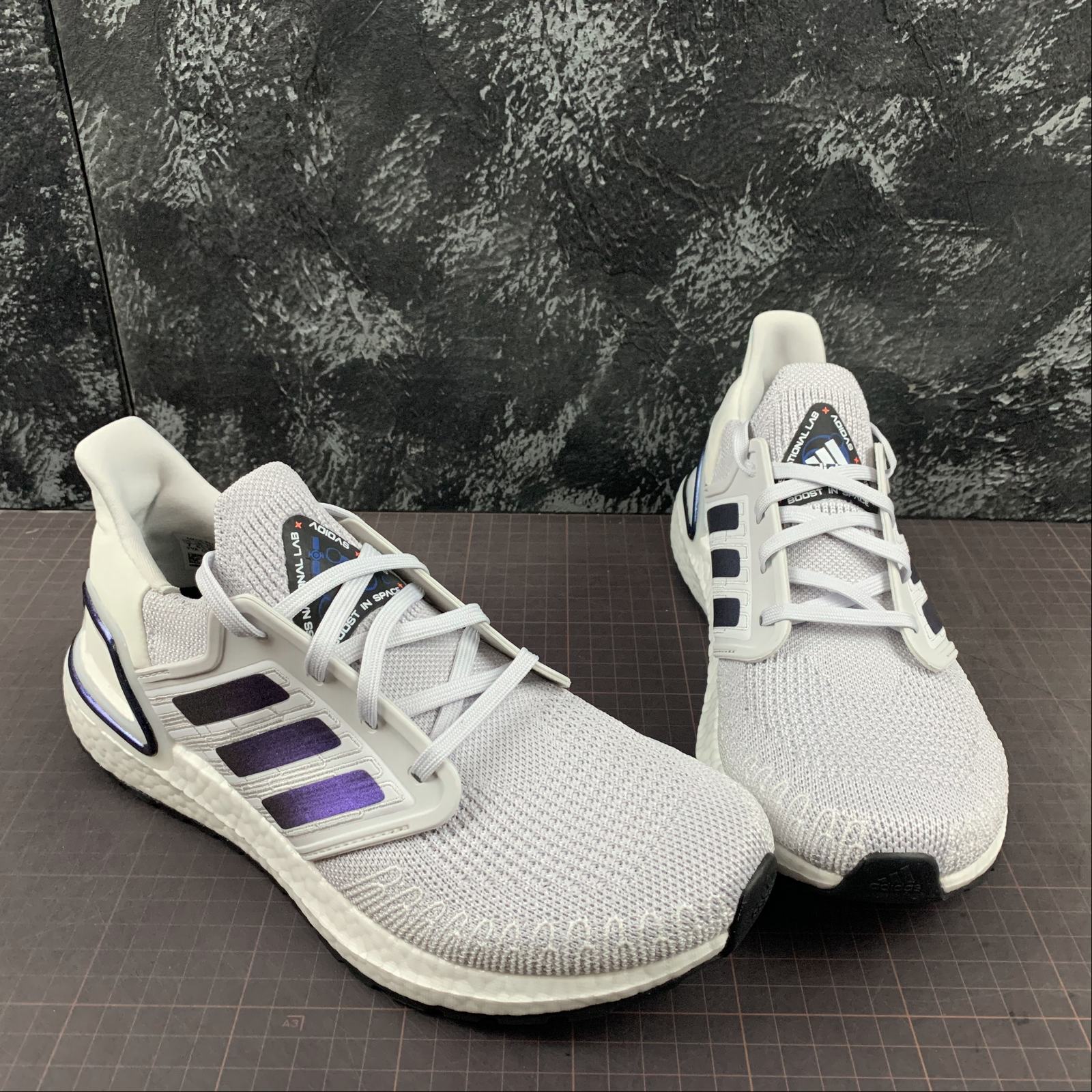 Introducing the ISS US National Lab x adidas UltraBoost 20 Dash Grey. Created in collaboration with adidas, this stylish running shoe combines comfort and performance. The sleek design features a dash grey colorway with white accents, inspired by the International Space Station (ISS) US National Lab. Step into outer space with these innovative sneakers and experience out-of-this-world comfort and style. Perfect for athletes and sneaker enthusiasts alike.