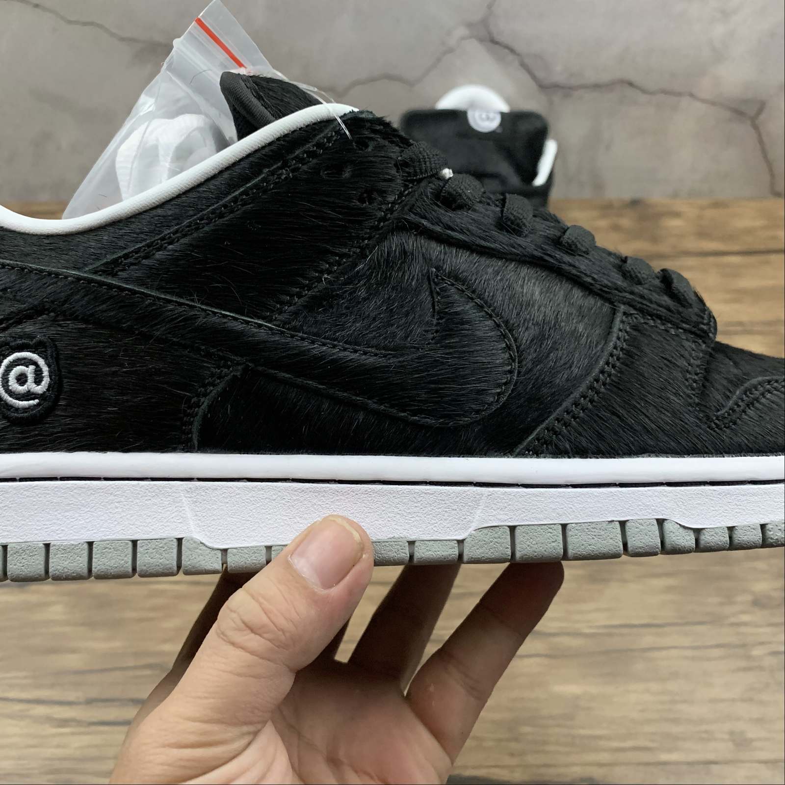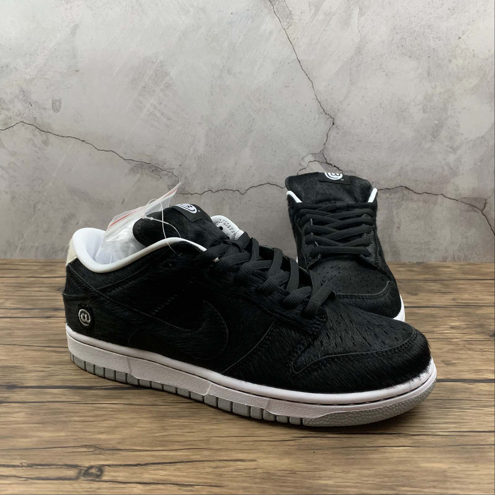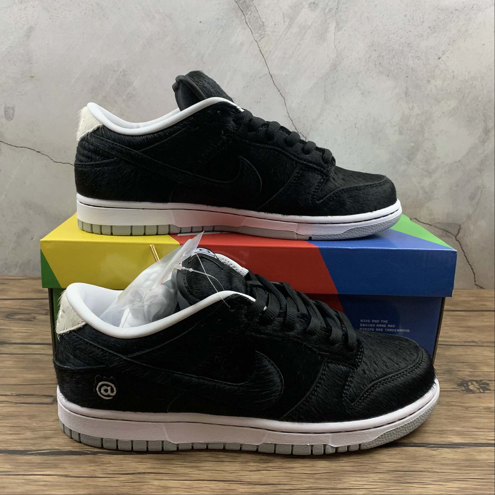 Introducing the Medicom Toy x Nike SB Dunk Low BE@RBRICK in a sleek black colorway. This collaboration between Nike and Medicom Toy features the iconic BE@RBRICK design, making it a must-have for collectors and sneaker enthusiasts. With its striking color and unique details, this shoe is sure to turn heads wherever you go. Upgrade your sneaker collection with this limited edition release.